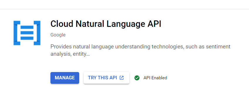 進入GCP新增一個API Key 並確認NLP API狀態為enable;詳細的GCP申請操作步驟可以看官方文件。(或是以後有機會寫。)